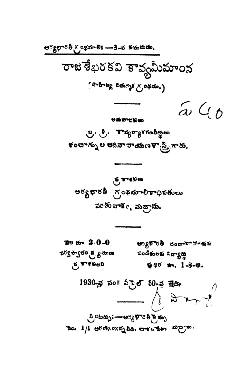 అనువాదకులు: శ్రీ కవ్యవ్యాకరణతీర్టులు కంచాగ్నుల అదినారాయణ శాస్త్రి గారు