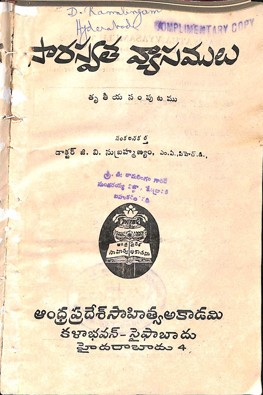 సారస్వత వ్యాసములు (తృతీయ సంపుటము )