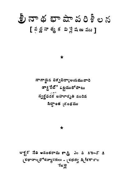 శ్రీ నాథభాషా పరిశీలన [ వర్ణనాత్మక విశ్లేషణము]